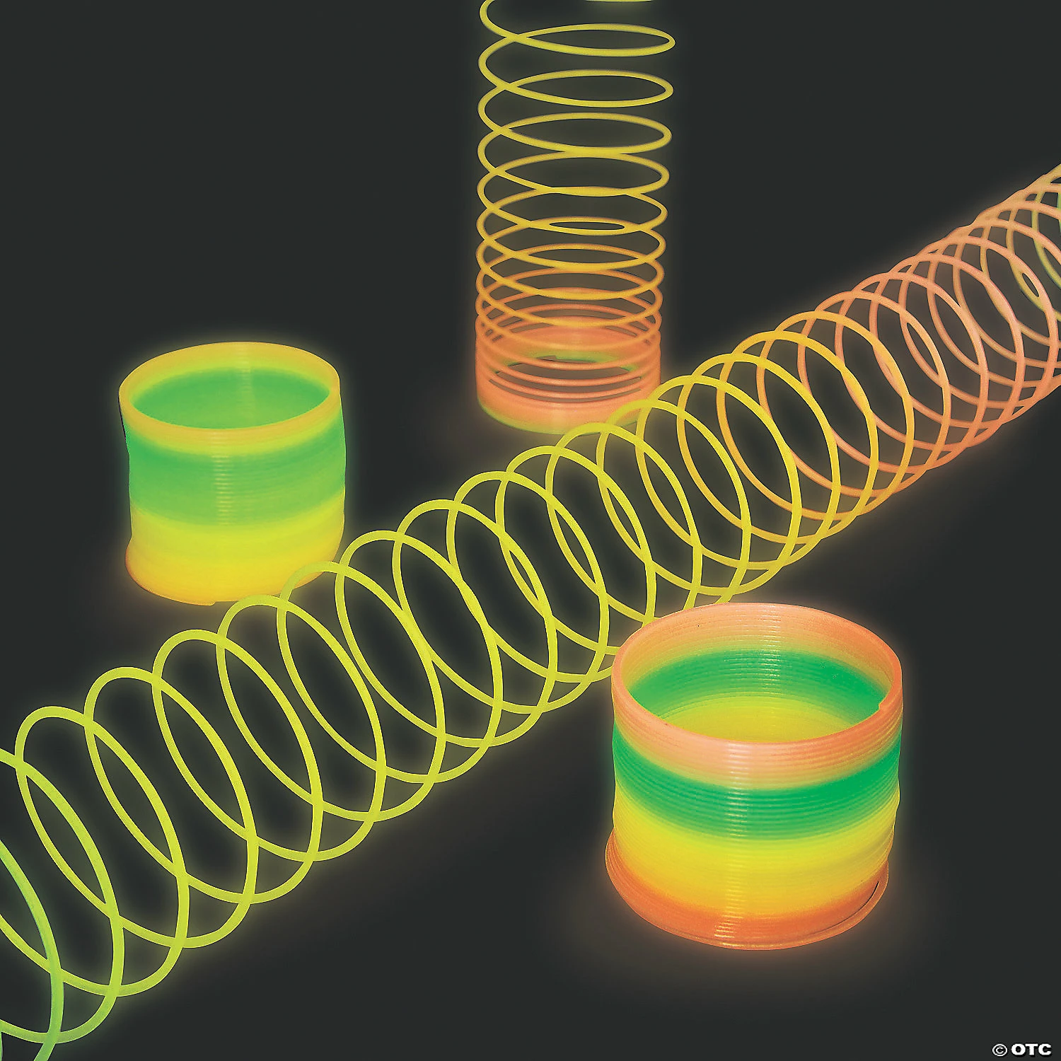 • What’s Included: You get 12 magic springs in the set. Buy a few sets so you have enough for everyone!• Glows in the Dark: Expose the magic springs to daylight or any strong light and then take them into the dark and watch them glow bright. • Great for Kids: Kids three and older will have fun stretching out these colorful, striped magic springs and watching them spring back. Recommended for kids three and older. • Fun for Parties and Giveaways: Since they glow in the dark, these magic springs are perfect as Halloween candy substitutes. Also, add them to party treat bags, hand them out as carnival game prizes or give as rewards for good schoolwork.Product Description: They glow! This set includes a dozen glow-in-the-dark magic springs that make great Halloween party favors or evening carnival prizes. Charge them in the sun or a strong light and watch them glow in the dark!Specs: Size: Approx. 3”Quantity: 12Material: Plastic